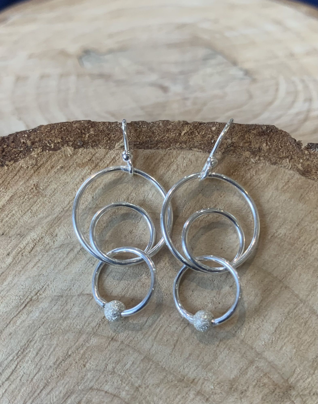 Sterling silver multiloop earrings, with a sterling silver sparkle bead and sterling hooks