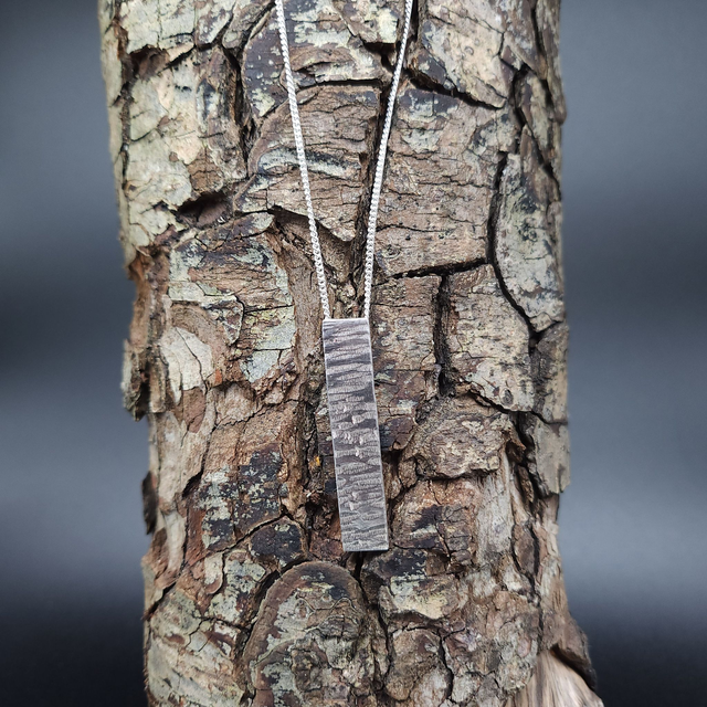 43mm x 9mm textured rectangle, sterling silver, with ss chain