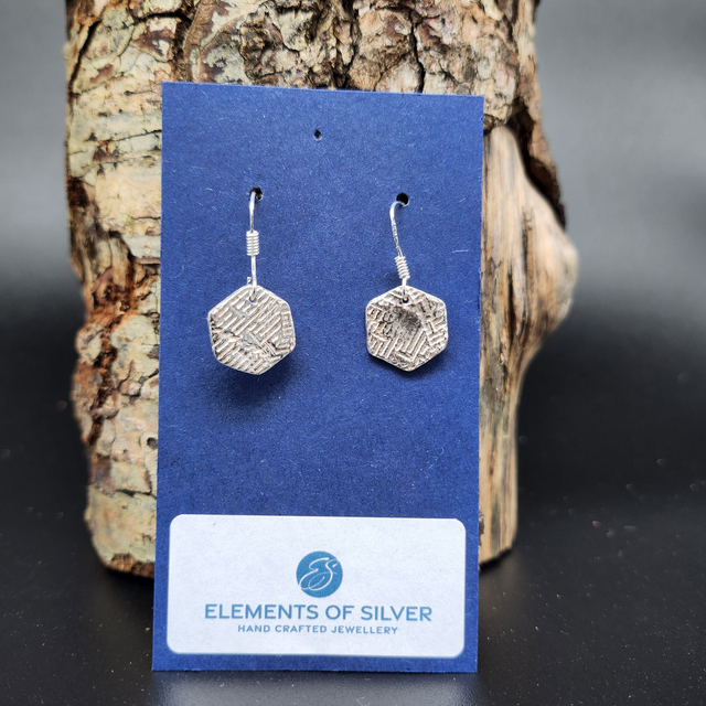 14mm textured pure silver hexagons on ss hooks