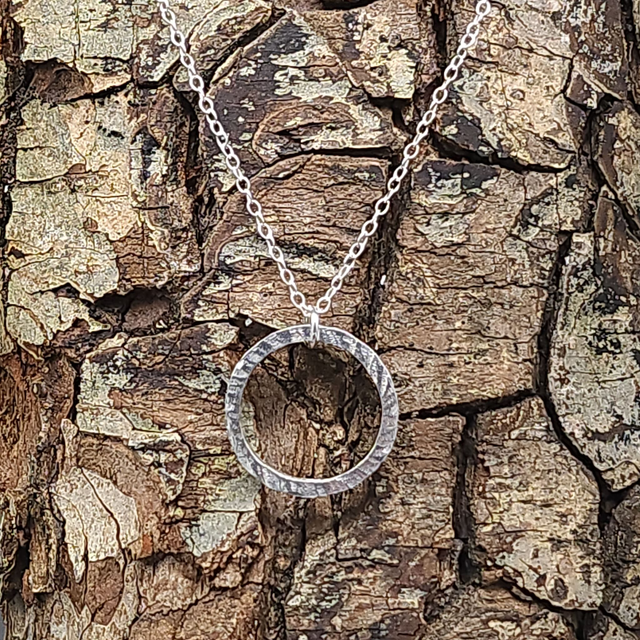 22mm external diameter textured hoop from 2mm square wire, with large jump ring. All sterling silver, on a ss chain